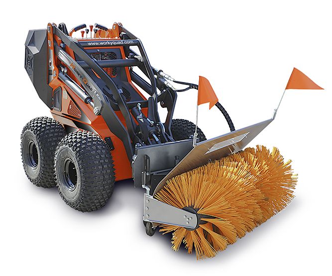 SSQ 22 in action with floating rotary brush, an attachment suitable to the cleaning of big squares, sidewalks, etc. It’s particularly adapted to snow removal in small size areas, private courtyard, paths.