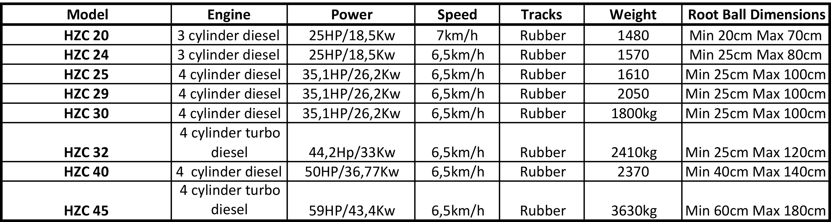 The HZC 32 is the most popular model in the range. The HZC 32 lifts a root ball of 120cm. The vertical lift of 45cm allows for greater manoeuvrability.